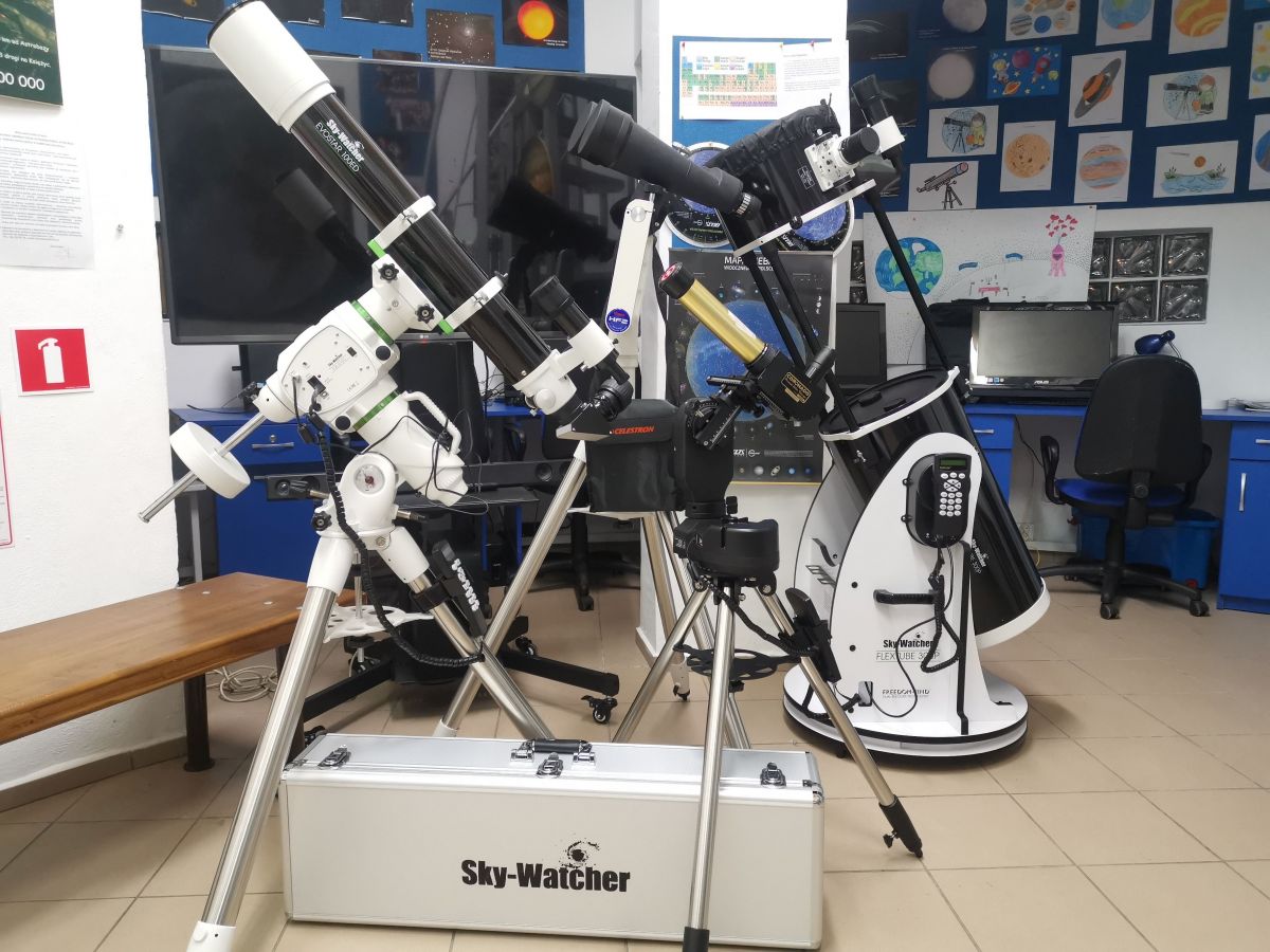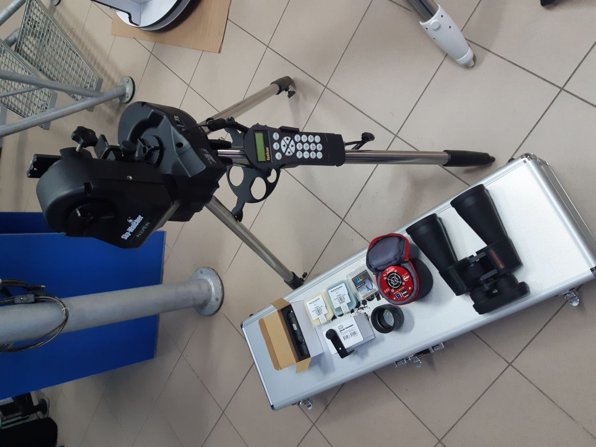 W ramach projektu „Niebo nad Astrobazami…” dla szkół biorących w nim udział został zakupiony nowoczesny sprzęt optyczny. Będzie on służył uczniom w trakcie zajęć projektowych z astrofotografii oraz kół astronomiczno-geograficznych. Dla każdej szkoły zakupiono sprzęt optyczny o łącznej wartości 664 734,00 zł. W skład tego sprzętu weszły m.in. teleskopy paraboliczne, słoneczne, optyczne, zestawy filtrujących soczewek, elektroniczne nośniki pamięci czy lornetki astronomiczne.